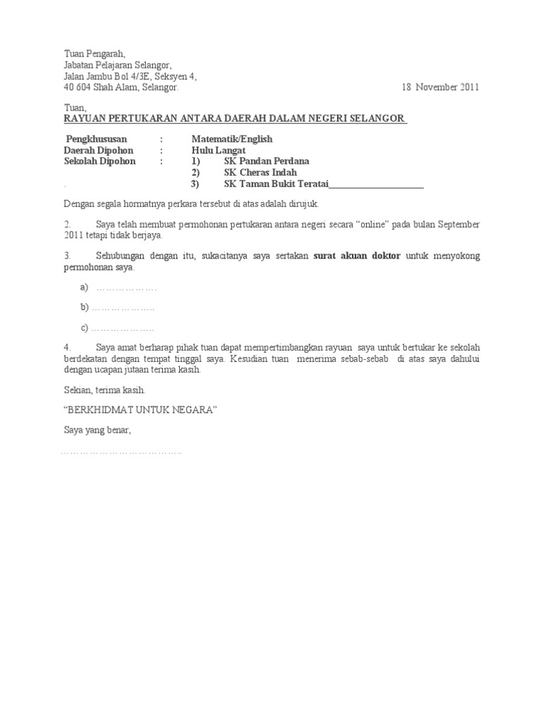 Rayuan Pertukaran Ke Ppd Hulu Langat Pdf